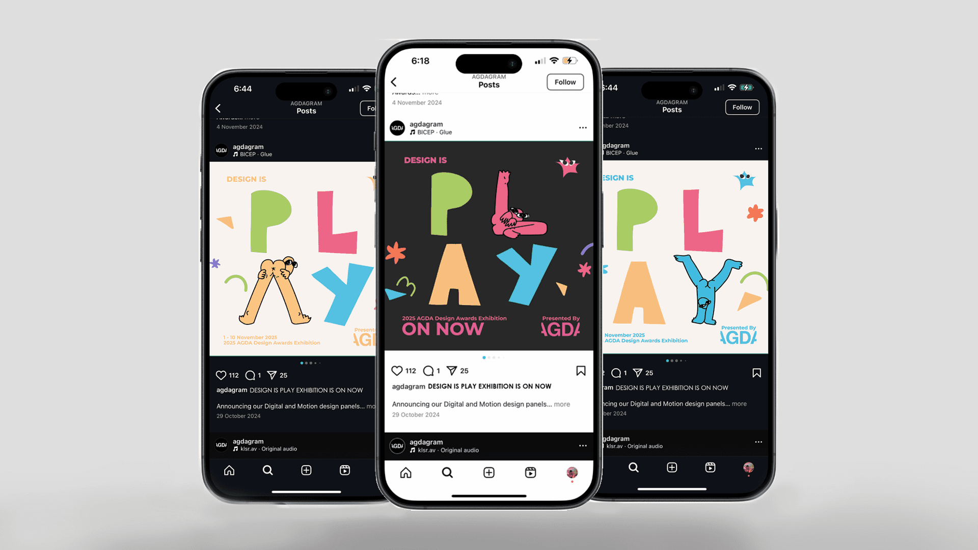 Design Is Play is a branding project that reflects my bold, risk-taking approach to design that enables myself to create memorable and engaging works. In response to a brief for the AGDA Design Awards to complete the prompt “Design is…”, I chose “Play” as a concept to explore and push further.